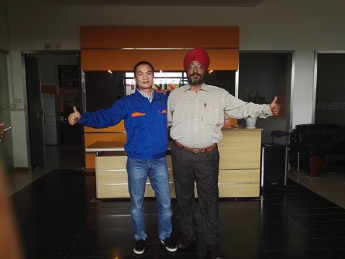 2015年11月16日,我們漢高機(jī)械副總經(jīng)理肖遠(yuǎn)平先生親自接待了 Mr Singh先生,同行的還有我們的外貿(mào)業(yè)務(wù)員謝鑫梅小姐和 Mr Singh先生的中國朋友。按照行程計劃表,我們首先帶 Mr Singh先生參觀了我們的工廠,展示了我們的內(nèi)整平裝配區(qū)域,制管機(jī)裝配區(qū)域,光亮退火裝配區(qū)域,倉庫區(qū)域,發(fā)貨區(qū)域,休息區(qū)域等,Mr Singh先生高度贊許了我們的5S管理體制,表示將學(xué)習(xí)應(yīng)用我們的成功經(jīng)驗在他們的車間管理體制上。在這個過程中,我們一一向客戶詳細(xì)展示了設(shè)備,包括設(shè)備的構(gòu)造,配件,電氣設(shè)備,工作原理,操作事項等。隨后我們帶Mr Singh先生到了會議室,在準(zhǔn)備產(chǎn)品PPT展示的同時帶領(lǐng)客戶參觀了我們的產(chǎn)品櫥窗,親手感受我們的產(chǎn)品效果。一切準(zhǔn)備就緒后,我們開始向客戶做產(chǎn)品presentation,了解客戶的各方面要求并記錄下來方便為客戶做技術(shù)方案和報價。會談在愉快的氣氛中結(jié)束了,我們開始下一個主題。我們帶客戶去了我們在佛山本地的客戶工廠,了解設(shè)備的投入使用情況,運行情況和成品情況。由于提前做好了溝通工作,我們佛山的老客戶已經(jīng)為我們安排好了參觀行程和隨行工程師講解,讓印度客戶更深入的了解我們的設(shè)備。印度客戶對我們的高效率,良好的溝通,清晰的展示,周到的服務(wù),產(chǎn)品的質(zhì)量等各方面都非常滿意,表示希望我們給他一個最好的價格,他很希望能與我們這樣誠信敬業(yè),有資質(zhì)有實力的公司長期合作,只要價格合適他就會陸續(xù)下單。肖經(jīng)理表示:No problem.We appreciate you.