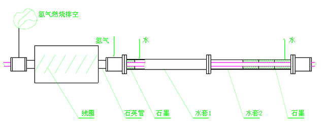 三 工藝特點: 將不銹鋼焊管用感應加熱的方式加熱到固溶所需溫度(304材質(zhì)1040℃),并在以氫氣為保護氣體的密封裝置中進行固溶化處理,改善焊縫的組織結(jié)構(gòu)并消除應力,以增強抗腐蝕性能;用氫氣作保護氣體可使固溶化處理后的焊管變得光亮并加快冷卻速度。 不銹鋼焊管加熱到固溶溫度后的冷卻采用間接冷卻方式,以保持焊管光亮。 其加熱與冷卻部分設(shè)備示意圖如下: